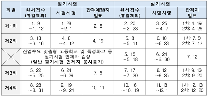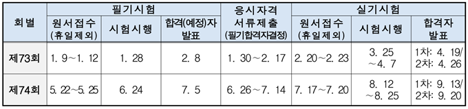 기사 제1회 필기시험 원서접수는 1. 10.~1. 13.(2월까지 응시자격을 갖춘 자)에 원서접수가 가능하며, 2월에 시험이 시행됩니다.